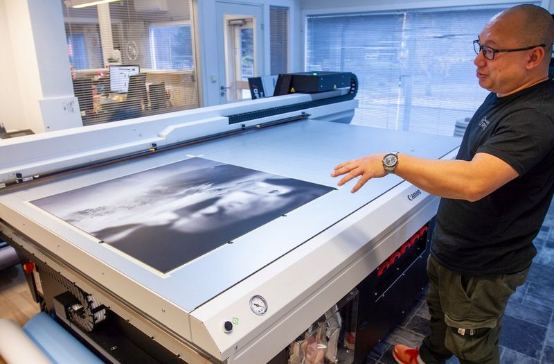 Blant mange lokale kunder, har det tradisjonsrike trykkeriet et nært samarbeid med lokale fotografer. Kai forteller at det spilte en viktig rolle for beslutningen om å investere i en Canon Arizona flatbedprinter.