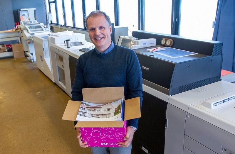 – Vi har allerede gode synergier mellom Fræna Trykk i Hustadvika og EKH Grafisk her i Molde. Nå går alt av trykk på papir her, og så går alt av storformat, skilt og foliering i Hustadvika. Begge produksjonsbedrifter går med god lønnsomhet, og vi har en drøm om å samle alt under ett tak i løpet av neste femårsperiode, sier mannen som for et år siden overtok som eier og leder av den 124 år gamle virksomheten i Molde.