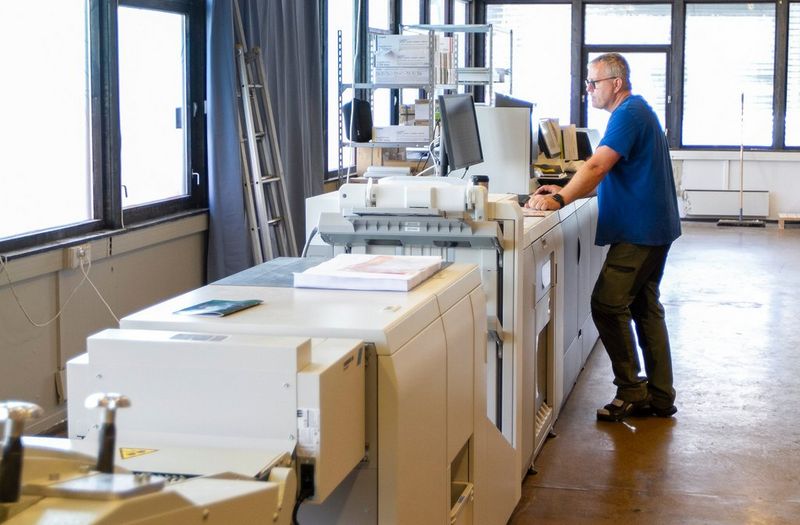 I tillegg leder Kjetil Moen familiebedriften Fræna Trykk, slik han har gjort i mange år. – Det blir ikke så mye fritid, men det er en livsstil og jeg synes det er “fole artig”, sier en mann som har vokst opp med grafisk produksjon, og som for 23 år siden jobbet som offsettrykker hos nettopp EKH Grafisk. Den gang var plateveggen alltid full av trykkplater og offsetpressa gikk to skift, men tidene har utvilsomt endret seg.
