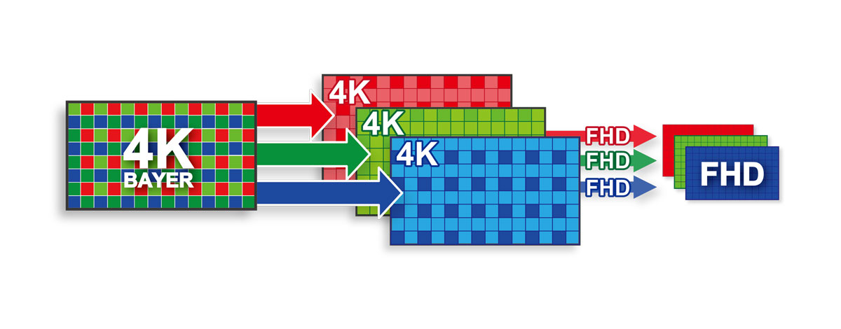Ta opp imponerende 4K-video med høy bithastighet til et internt CFast 2.0™-minnekort, og Full HD-video eller stillbilder til et separat, internt SD-kort Utnytt de store kreftene til 4K-bilder i opptak i Full HD, med høyere kvalitet og betydelig renere resultater ved hjelp av HD-behandling med oversampling.