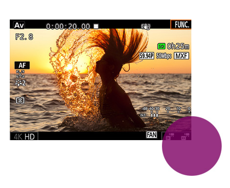 Ta opp video med lite støy i alle slags utfordrende situasjoner ved hjelp av en høy ISO på opptil 20 000, som gir økt følsomhet og utmerket ytelse under dårlige lysforhold. Et innebygd ND-filter forbedrer ytterligere eksponeringskontrollen i sterkt lys eller når en større blenderåpning er nødvendig.