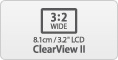 3,2 tommers Clear View II LCD-skjerm med høy oppløsning og 1 040 000 punkter gjør det enkelt å se gjennom bilder og video. Svært robust konstruksjon i herdet glass motvirker gjenskinn selv i sterkt sollys.