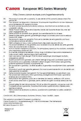This warranty will be your sole and exclusive remedy, and neither Canon nor its subsidiaries or other European WG Series Warranty members shall be liable for any incidental or consequential damages for breach of any express or implied warranty of this product.