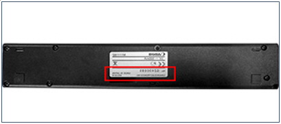 • Du finner serienummeret på undersiden av produktet i feltet merket med "serienummer". Du finner serienummeret ved den røde linjen, som vist i bildet nedenfor: