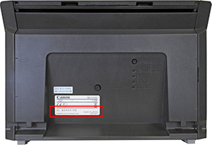 • imageFORMULA-skannerens serienummer består av åtte tegn og inneholder to bokstaver etterfulgt av seks tall, f.eks. XX000000. Dette står trykket på et klistremerke som du finner enten på baksiden eller undersiden av skanneren.