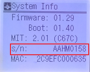 Serienummeret for din imagePROGRAF TX-skriver vil være en sekvens av ni alfanumeriske tegn.
