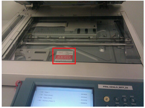 2. På enkelte maskiner finnes det også på en etikett under glassplaten på skanneren (løft lokket på skanneren for å se den).