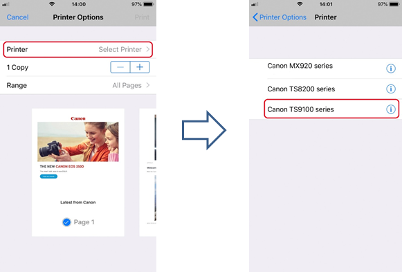 Se listen over PIXMA / imagePROGRAF-skrivere som er kompatible med Apple AirPrint.