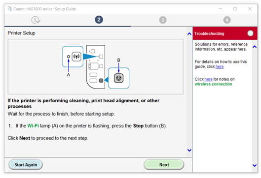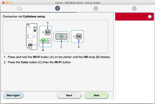 16. Konfigurasjonsveiledningen åpnes og veileder deg gjennom prosessen med å koble skriveren til nettverket ved hjelp av prosessen for kabelløs konfigurasjon.