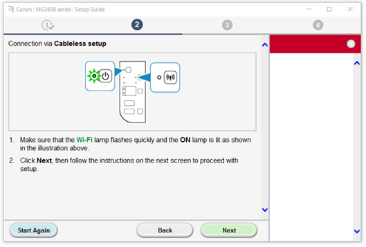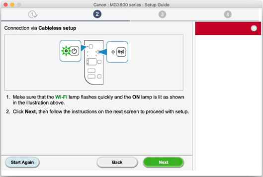 14. Konfigurasjonsveiledningen åpnes og veileder deg gjennom prosessen med å koble skriveren til nettverket ved hjelp av prosessen for kabelløs konfigurasjon.