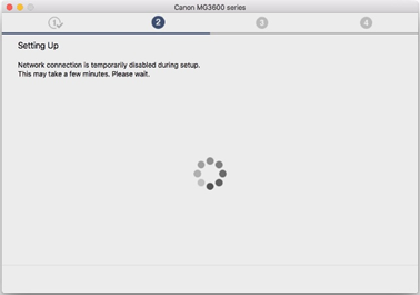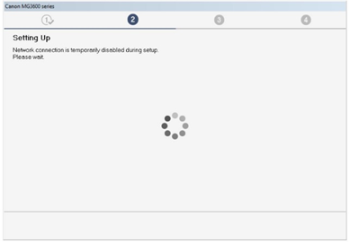 15. Vent mens konfigurasjonen registrerer skriveren. I løpet av denne tiden deaktiveres nettverkstilkoblingen på datamaskinen midlertidig.