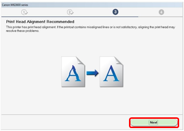19. Hvis dette er første gang du konfigurerer skriveren din, anbefales det å utføre skrivehodejustering. Når installasjonen er fullført, klikker du på [Next] (Neste). Se brukerhåndboken for å få mer informasjon.
