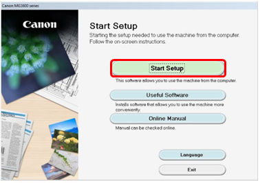 4. Når følgende skjermbilde vises, klikker du på [Start Setup] (Start konfigurasjon).