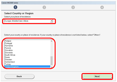 3. Velg region og land, og klikk deretter på [Next] (Neste).
