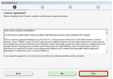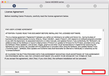 4. Hvis du godtar vilkårene i lisensavtalen, klikker du på [Yes] (Ja).