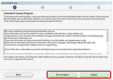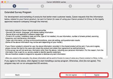 5. Hvis du ønsker å ta del i Extended Survey Program, kan du klikke på [Agree] (Godta). Du kan også klikke på [Do not agree] (Godtar ikke).