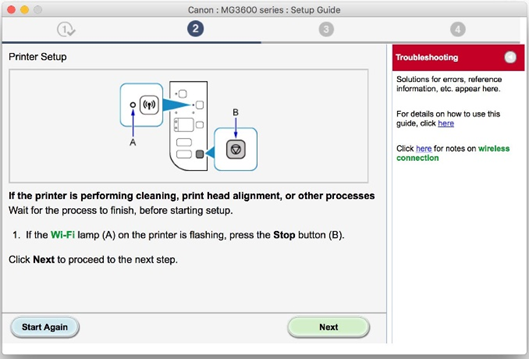 Følg instruksjonene på skjermen nøye for å klargjøre skriveren for tilkobling. Bare klikk på Neste når skriveren samsvarer med eksempelet i diagrammene nedenfor.