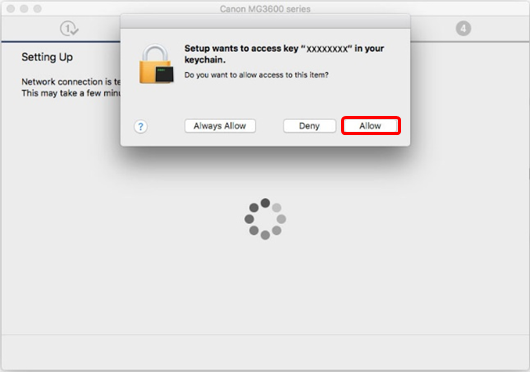 18. Når følgende melding vises, klikker du på [Allow] (Tillat).