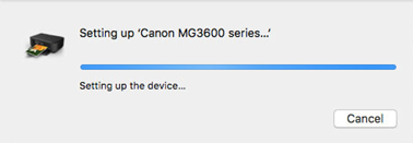 25. Følgende skjermbilde vises. Vent litt mens skriveren konfigureres. Når du har lagt til skriveren, kan det hende konfigurasjonsskjermbildet er skjult av nettleservinduet. Hvis dette er tilfellet, klikker du på konfigurasjonsikonet