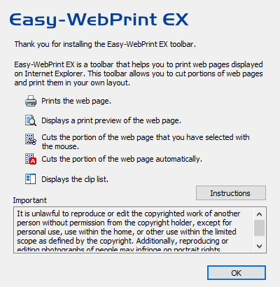 Easy-Web Print EX er en plugin for Windows Internet Explorer som gjør det enkelt å velge viktige deler av en webside før du fester dem til ett enkelt dokument for utskrift. Det inneholder en forhåndsvisningsfunksjon, en festefunksjon og en funksjon for redigering av oppsett.