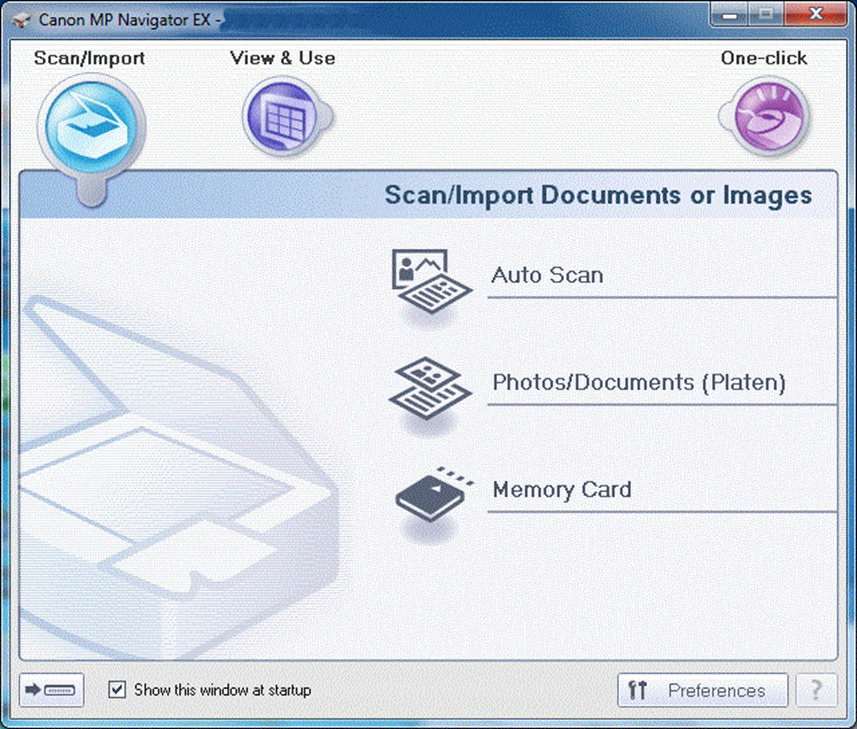 Med denne applikasjonen kan du skanne, lagre og skrive ut fotografier og dokumenter. Du kan også redigere bilder eller legge ved bilder i e-post.