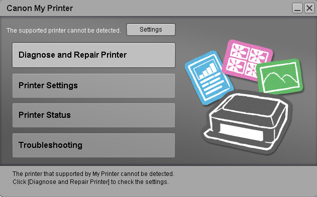 My Printer kan finne ut om det er noen problemer med installasjonen av driveren, i tillegg til å løse eventuelle problemer som er funnet.